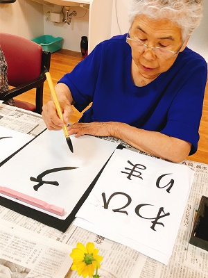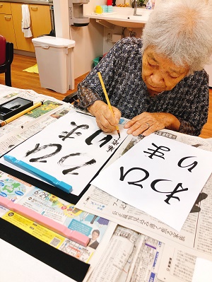 ✿7月1日✿ 文月 7月もスタートしました🎵 1日と言うことで、習字を行いました✨ 「文月」「ひまわり」「七夕」を選んでいただきました。 何度も練習を重ねるごとに力強い筆運びで、素敵な作品ができました💗
