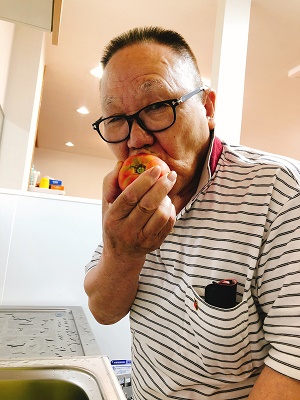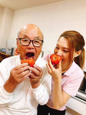 ご利用者様と食いしん坊の職員でトマトを丸かじり💛