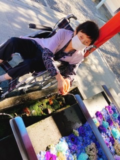 花手水を見て「綺麗ね」と笑顔で楽しまれました🌈