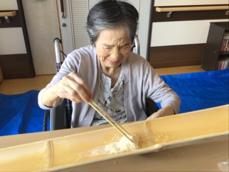 ユニット行事で流しそうめんに参加されている様子です。