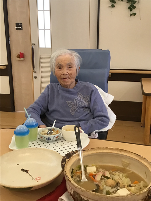 楓フロアでは冬の風物詩、お鍋を皆様で召し上がりました。白菜、ネギ、人参等、野菜を見て、「美味しそうな野菜や、鍋するんか?早く食べたいな」と仰っていました。お鍋を召し上がっていただき体も温かくなり、皆様でほっこりとなっていただきました。
