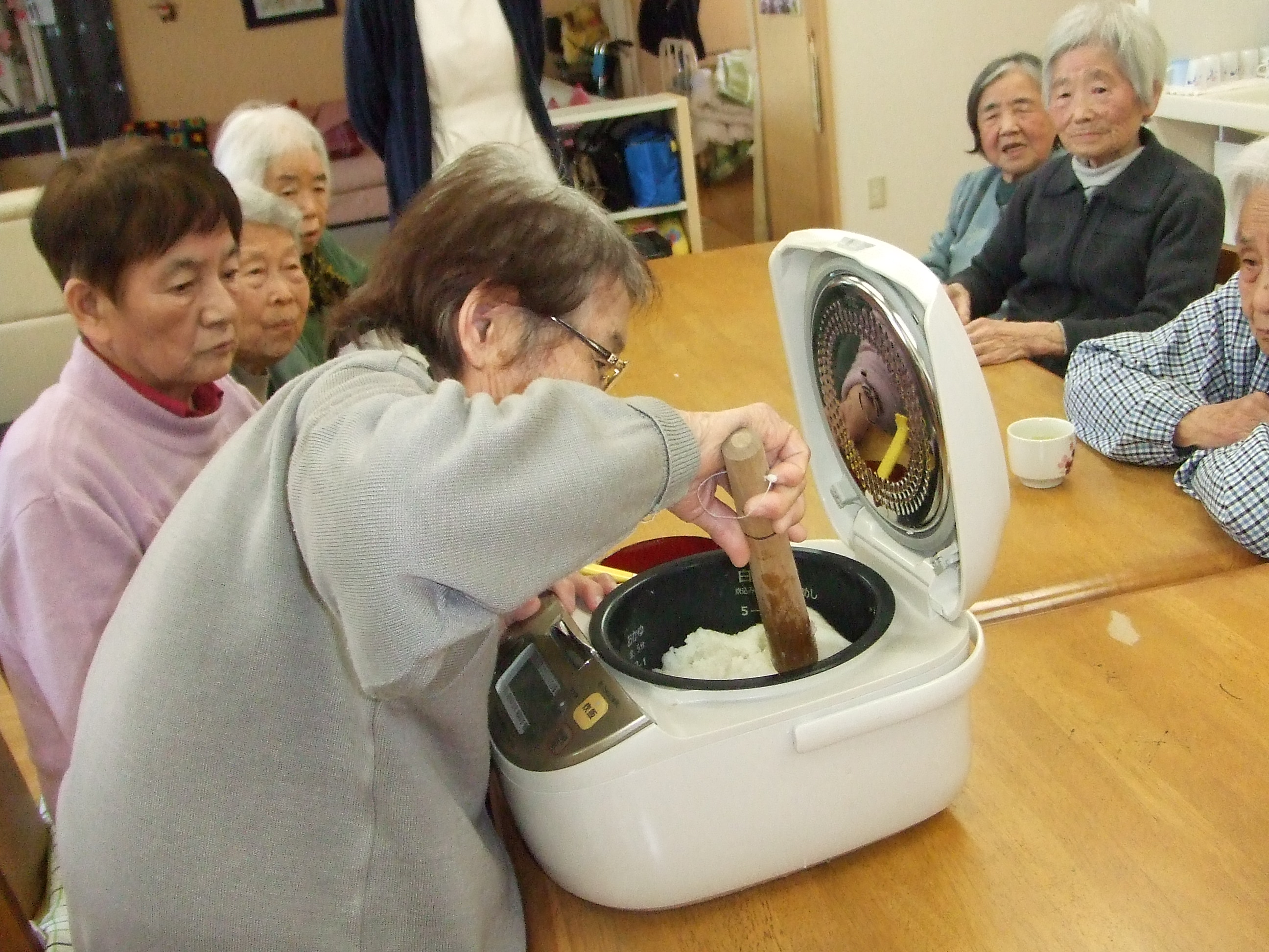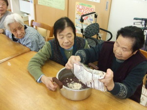 お菓子作りで、ぼたもちを作りました。あんこも、小豆を朝からご利用者の方にお鍋で炊いて頂き作りました。作られている際には「懐かしいな。昔を思い出すわ」などと言われ、楽しんでおい菓子作りをし、美味しくいただきました。(多賀)