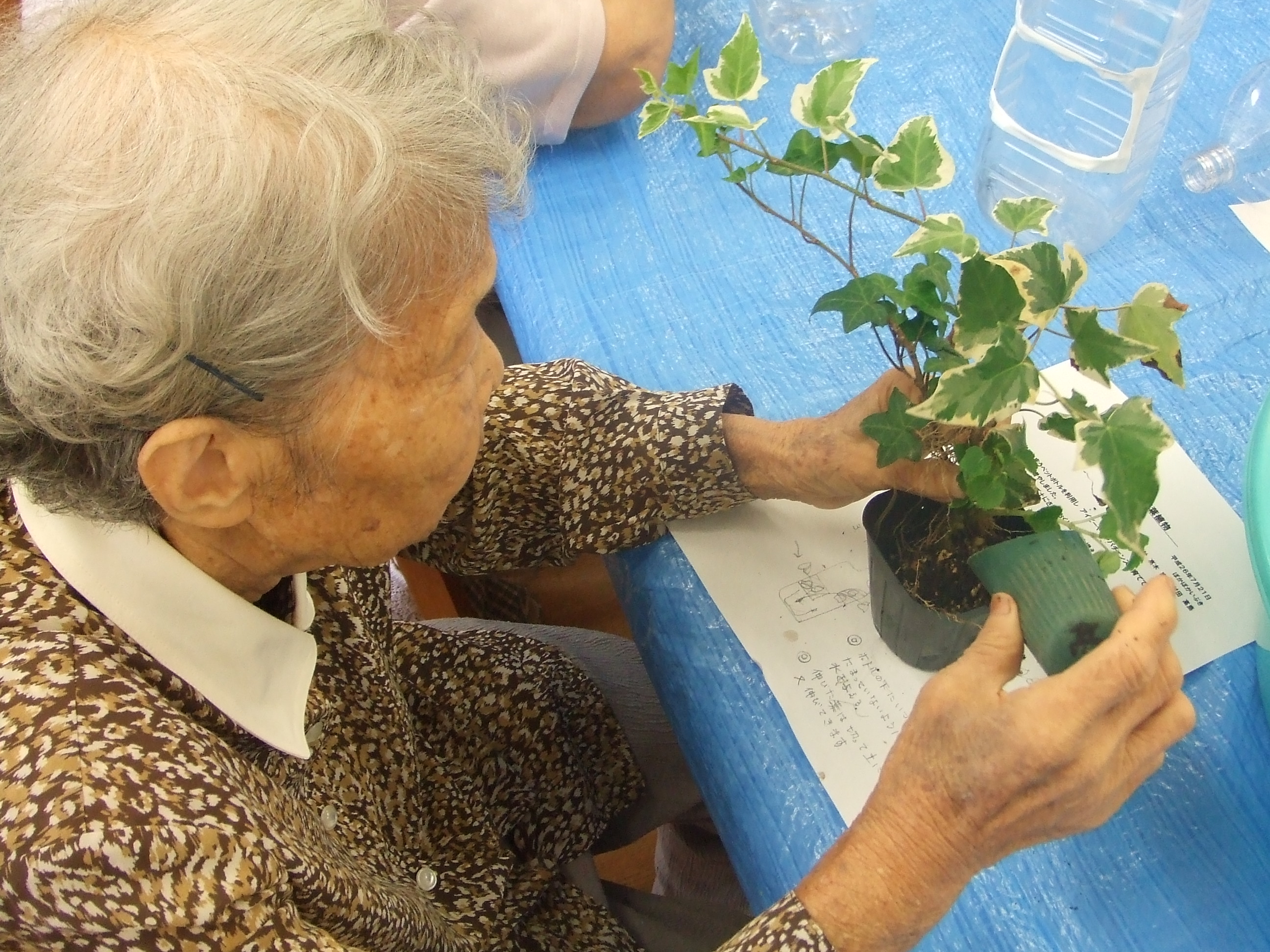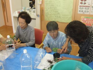 園芸ボランティアさんが来て下さり、ペットボトルを使用して園芸を行いました。2種類の植物を使用し、皆様、ご自宅に持って帰られました。どなたも一生懸命に作られ、とても楽しそうでした。