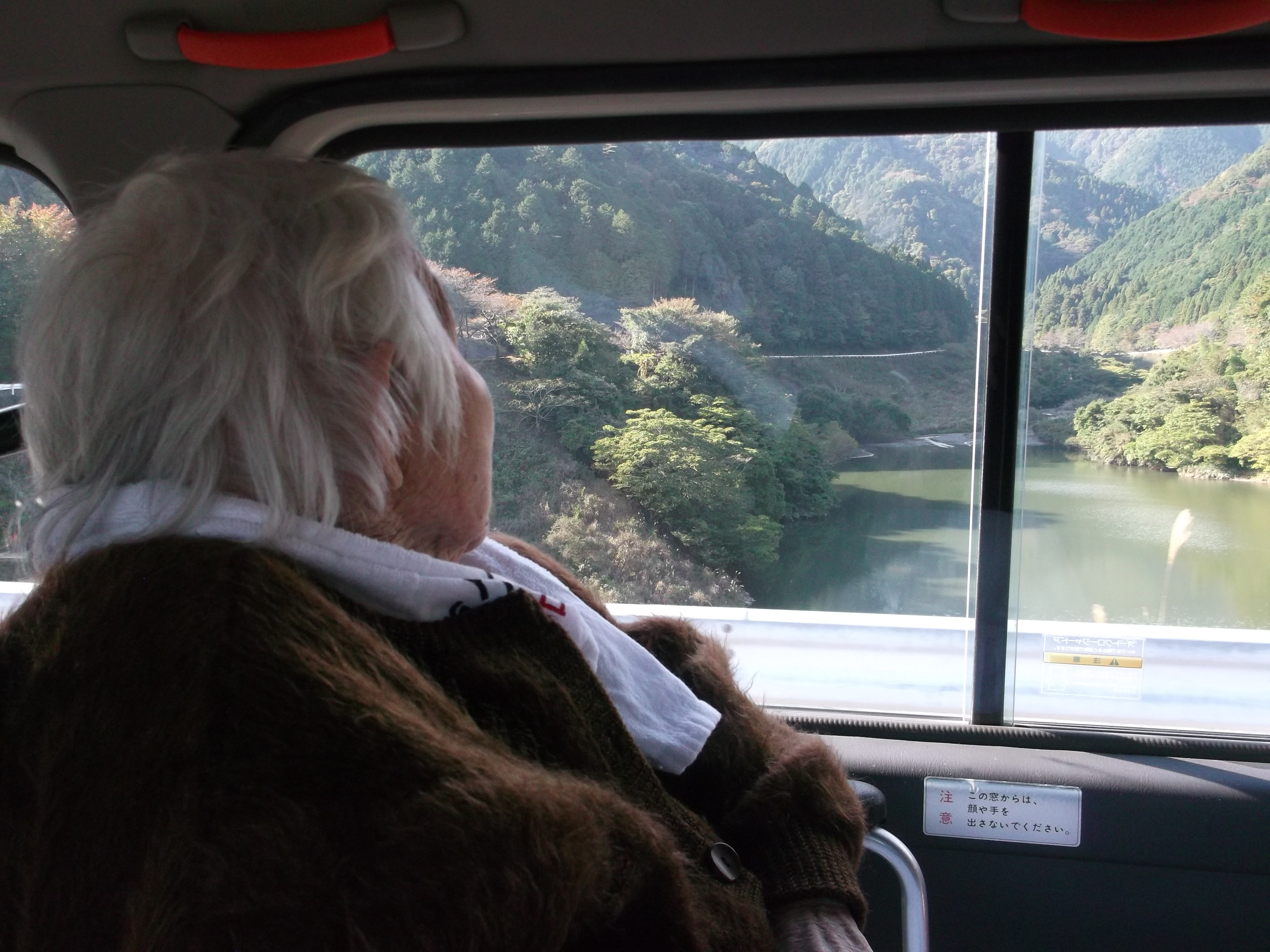 10月30日に3名の利用者様と明神湖へドライブに行ってきました。秋晴れの青空の下、外の空気を吸われ「いい気持ち、ありがとね。」と笑顔いわれました。景色も良く楽しいひとときでした。