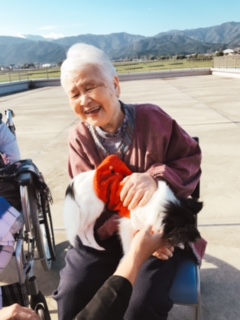 実際、行ってみて、どの利用者さんもかわいい動物に触れると、自然に笑顔が生まれ、表情が豊かになり、また、無口だった方の発語が増えたり、犬を自分の方に抱き寄せようと、自発的に手を動かそうとされている利用者さんがいました。30分という短い時間でしたが、単純に「楽しい」という気持ちが起こり、ワクワクした気持ちで、気分が明るくなる時間を過ごすことが出来ました。通院の関係で、参加できなかった利用者さんから、もう1回やってほしいとリクエストがありましたので、桜が咲く頃に、また計画を立てたいと思います。