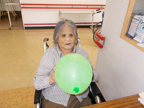 ひだまりサロンにて、リハビリを兼ねて風船バレーを行いました。様々な方向に飛んでいく風船を一生懸命たたいていただきました。楽しみながら手の運動にもなる風船バレー。