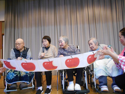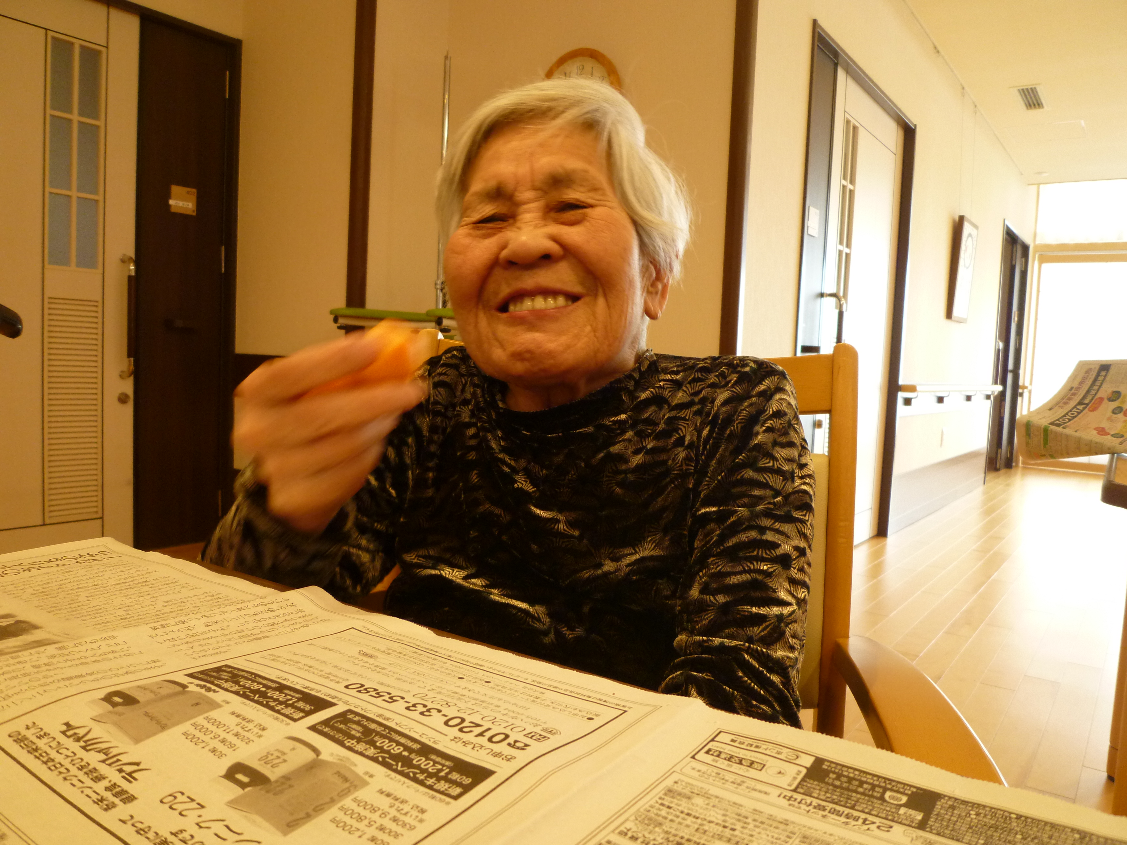 職員が持ってきた「柿」を入居者様の前でむき召し上がって頂きました。