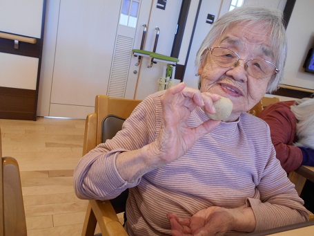 皆さん慣れた手つきで行われ、職員に「なさけないな〜こうやってやるんや」と教えてみえたり、「昔はよくやっとったな」「これはちょっとかたいで上手くできるやろか」と昔を懐かしんでみえるご利用者もみえました。