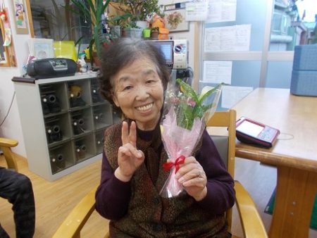 ご利用者代表で誕生者の方に花束を渡していただきました✿