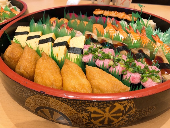今月はいつもより少し贅沢に…銀のさらでお寿司を桶で注文しました!