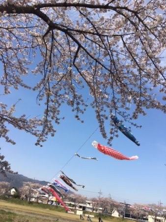 こいのぼりと桜を一緒に見られるのが素敵ですね。