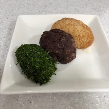 あんこときな粉はお米の上にあんこ、きな粉をそれぞれまぶし、青のりはあんこをお米で包んだ後に青のりをまぶしました。