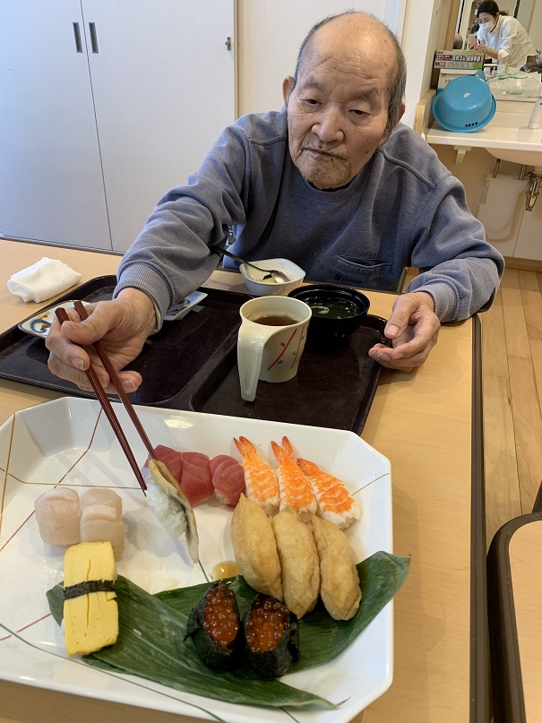 厨房の調理師さんたちが握った桶いっぱいのお寿司に、みな様とても喜ばれておりました。