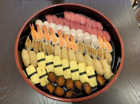 マグロ・ほたて・えび・穴子・稲荷・たまご・いくらの7種類を用意しました。