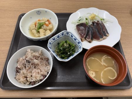 元号が「令和」となった5月1日のお昼、『かつおのたたき』を提供しました。
