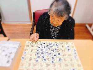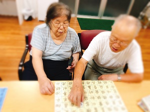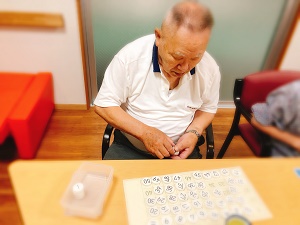 学習療法、漢字コマ並べ、計算コマ並べ、塗り絵等々…