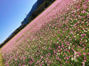 雲一つない透き通った青空にコスモスのじゅうたん。