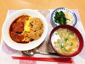 ライス、たまご、とんかつ、特製ソースが重なり合った絶品グルメです💗