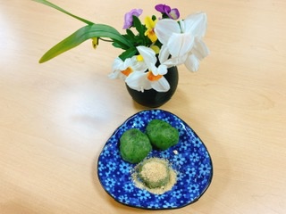 おやつは手作りよもぎ餅でした😋