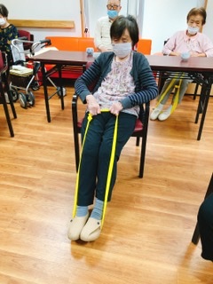 ゴムバンド体操🤸♀️音楽に合わせて体操を行いました😊