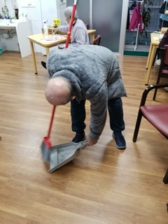 と勧んで掃き掃除をしてくださるご利用者様🧹