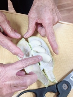 刀豆は、25cm程の大きな実ができその中に、またまた大きな種があります😆