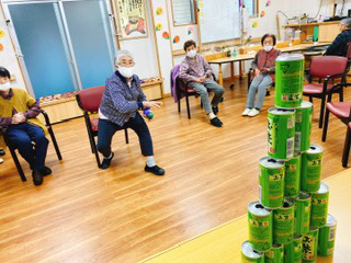レクリエーションは、缶倒しをしました🌈