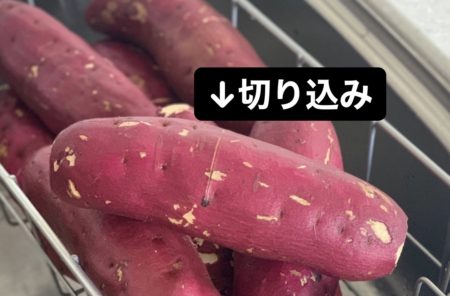 お芋の中心部に切り込みを薄く入れることで、