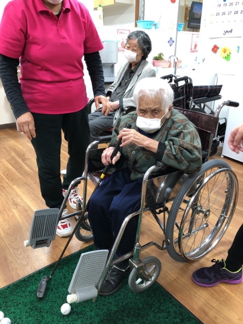 ゴルフの経験があるご利用者様がみえるので打ち方を教えてもらえます❤️