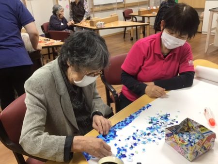 折り紙や貼り絵で作品を作るのですが