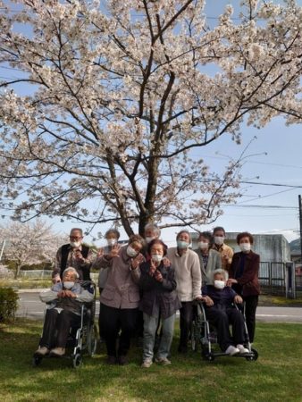 皆で桜の木下で一枚!皆さんいい笑顔ですね✨
