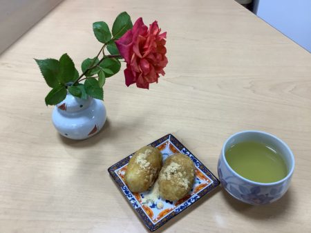 本日の手作りおやつは、ご利用者ご家族からいただいた小豆を使った「おはぎ」です。「甘くておいしいね😋」「2つも食べたよ」と、みなさんのお顔も甘くてとろけそうでした。