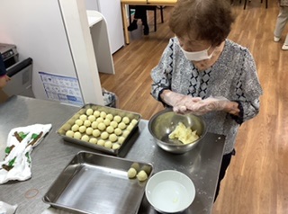 蒸したじゃがいもを潰して丸く形成してもらっています😋