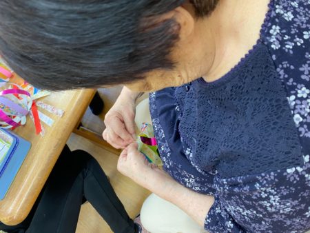 夏祭りにむけて折り紙を使った提灯を皆さんで作成しています♪