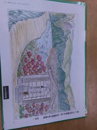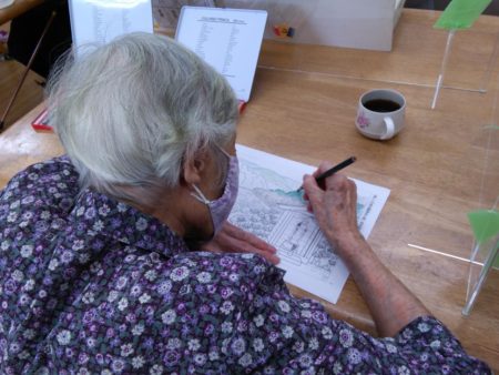 塗り絵が得意なY様。今日は何をして過ごされるかお聞きすると「塗り絵でもしようかな」と言われ、色鉛筆で丁寧に塗っておられました。