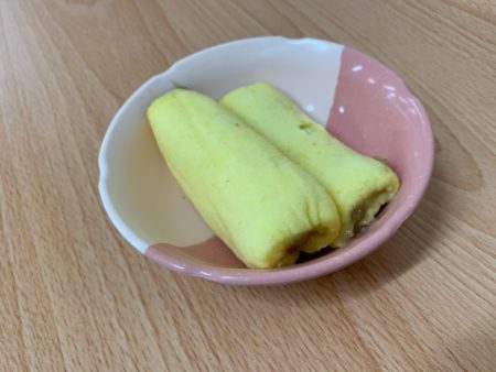 手作りおやつは、はつらつの畑で採れた大きなさつま芋を使った「芋餅」です✨