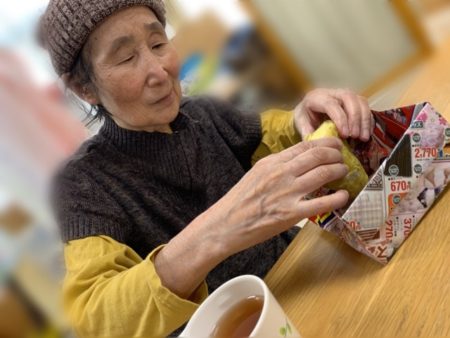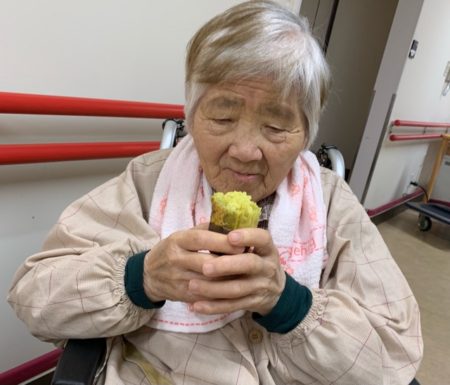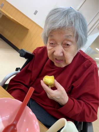 自ら居室から出てきて、ご自分でお芋を選ばれる方、