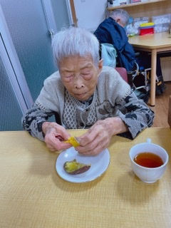 「いい匂いしてきたね❗️」「焼き芋の皮は食べる❓」「私は、皮も大好き❤️」と、焼き芋の食べ方でも盛り上がりました🥰