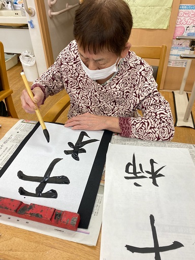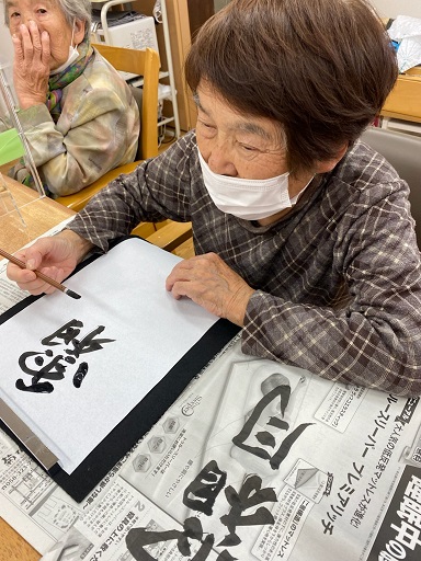 と次は何を書こう。と久しぶりの書道を楽しまれました😊