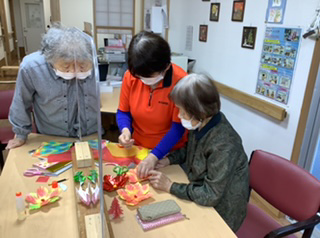 「赤で作るのが綺麗かな?」「この色も綺麗かな?」と、折り紙の色も気にされながら💕