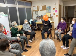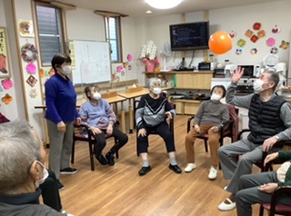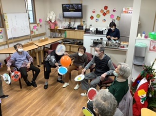 風船を落とさないように集中しながらもみなさんでもうすぐ迎える「お正月」の歌を歌いながら風船バレーを楽しみました🥰