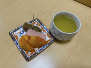 いただいた柿と、黒糖と桜色の手作りういろうです😋✨