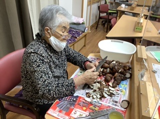 ご利用者にいただいた里芋を使って