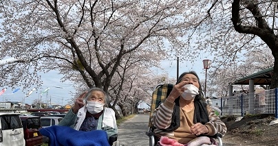少し風が強い日でしたが、爽やかな春の日差しを浴びながら、車椅子で相川まで出かけました。