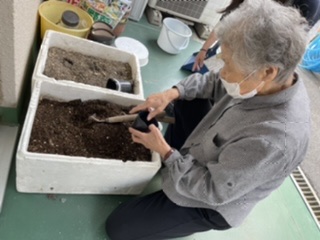 「カップの底には、葉っぱや小さく切った新聞📰を敷いて穴を塞いでね」