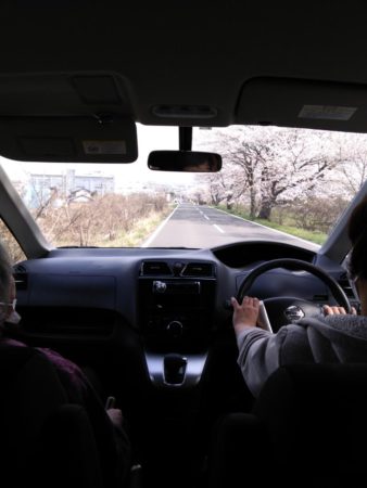 今日は少し肌寒いこともあり車の中から花見をしました。
