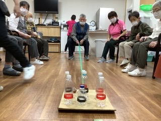 いざゲームが始まると、ペットボトルを倒すことに夢中になられている様子が