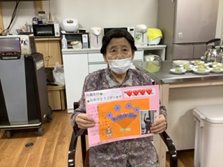 みなさんから歌とお祝いカードのプレゼントを贈られると「嬉しいわ」「ありがとう」と、にっこり笑顔がみられました🥰💕