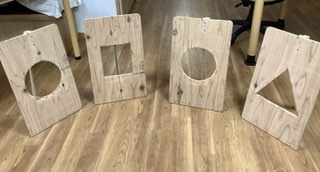 丸、三角、四角の的にボールを入れるゲームをおこないました‼️