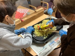 今日は久しぶりに昼食になる「焼きそば」を作っていただきました😊